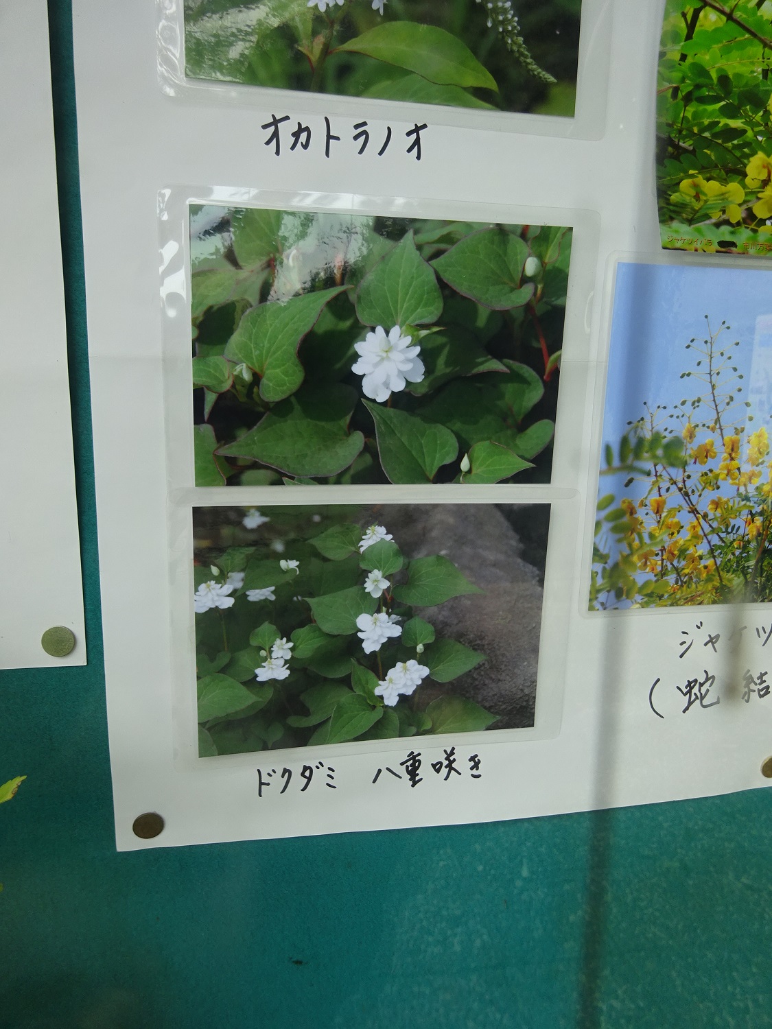 外の掲示板を見ると、なんとドクダミの八重咲きバージョン!!