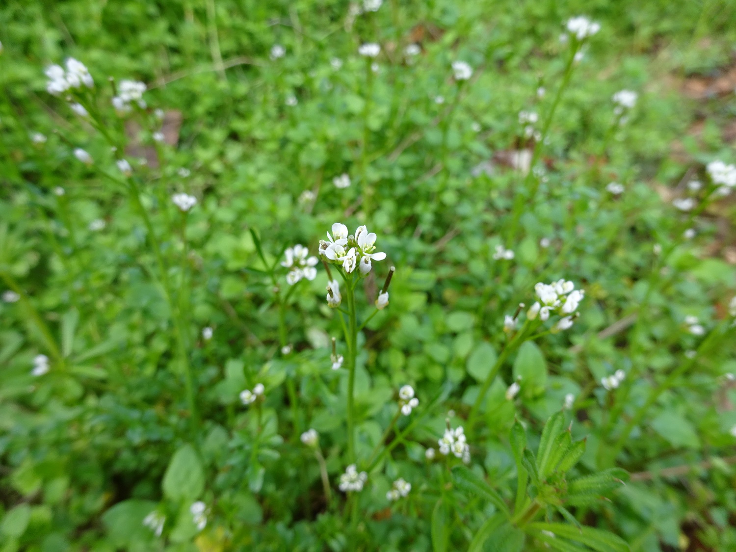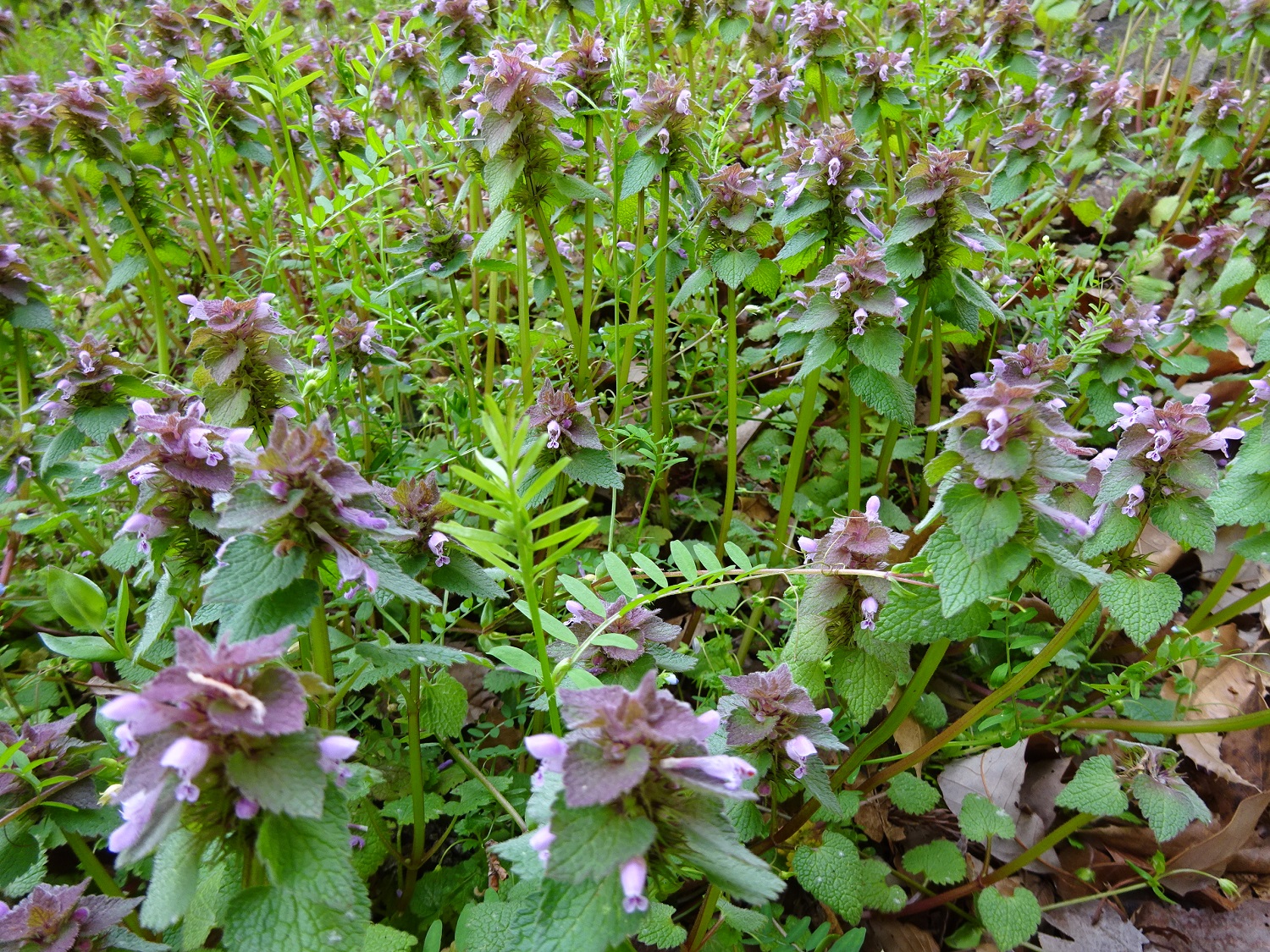 道端にはヒメオドリコソウの群生。
