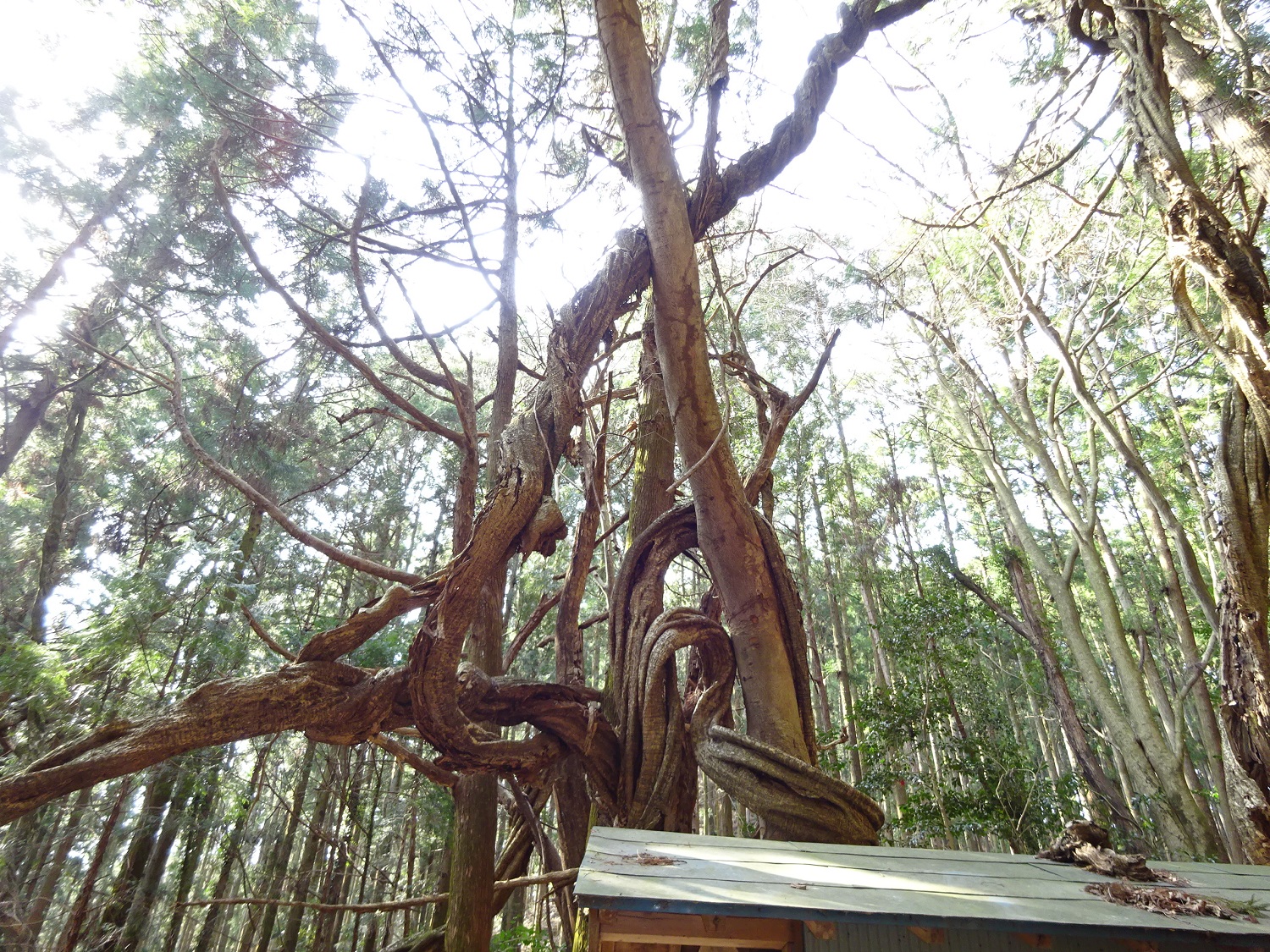 この奇妙に曲がりくねって伸びる御神木!!