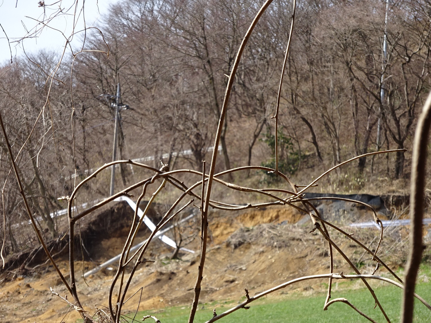 いやあ…ガードレールがひん曲がってます。道も崩落したまま。