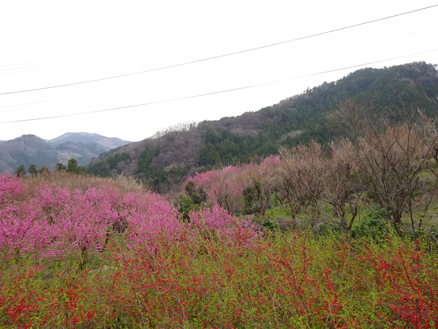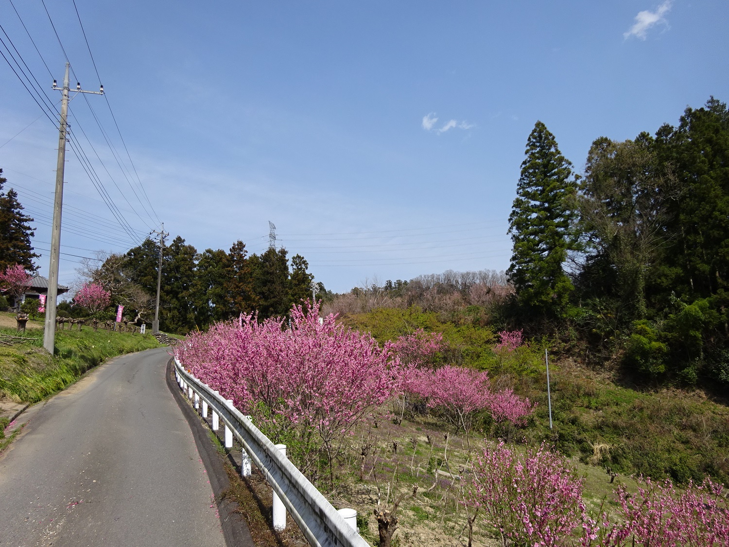 斜面に民家の畑があり、そこに花桃の木がポコポコ植えられている感じです。
