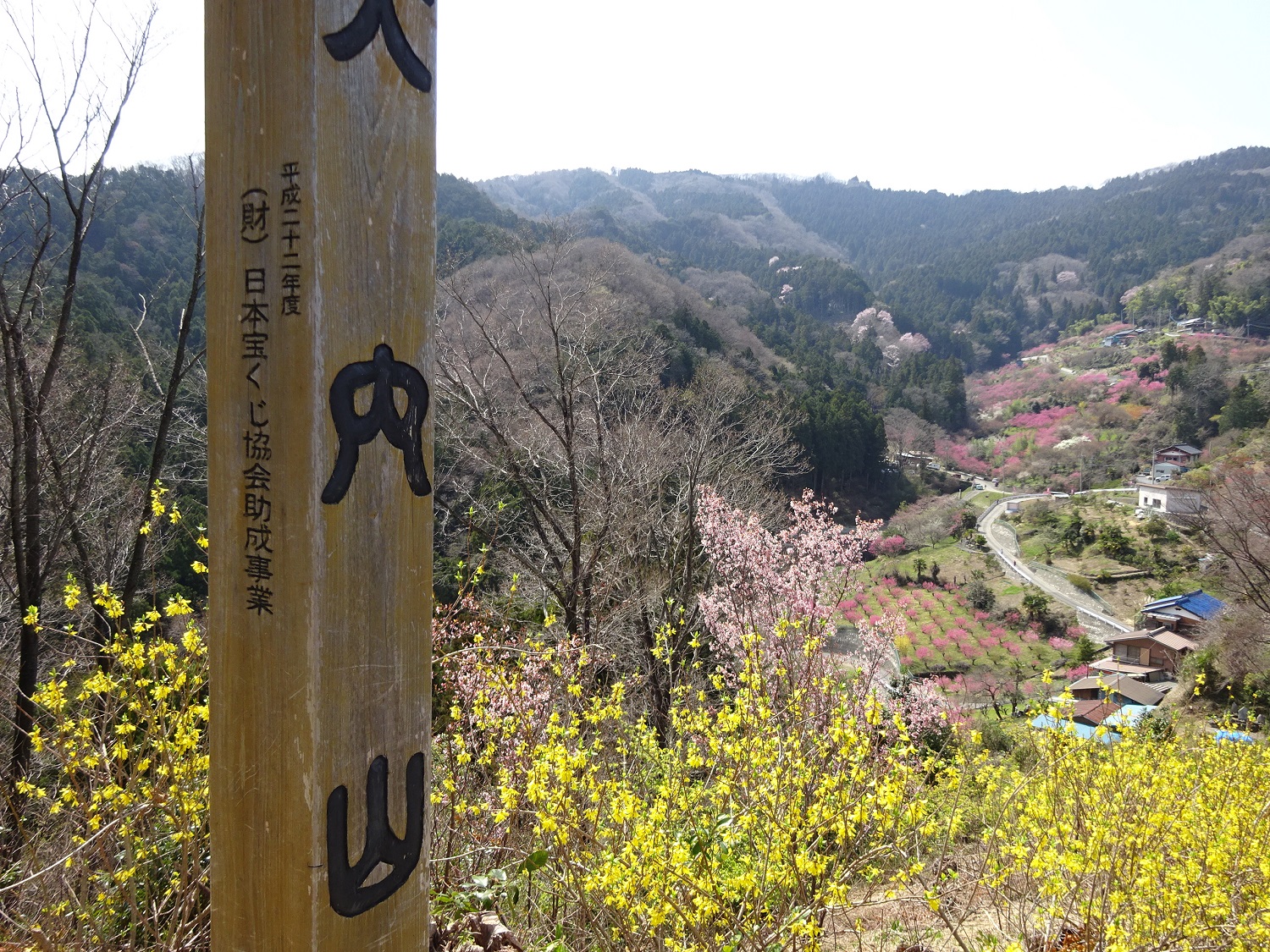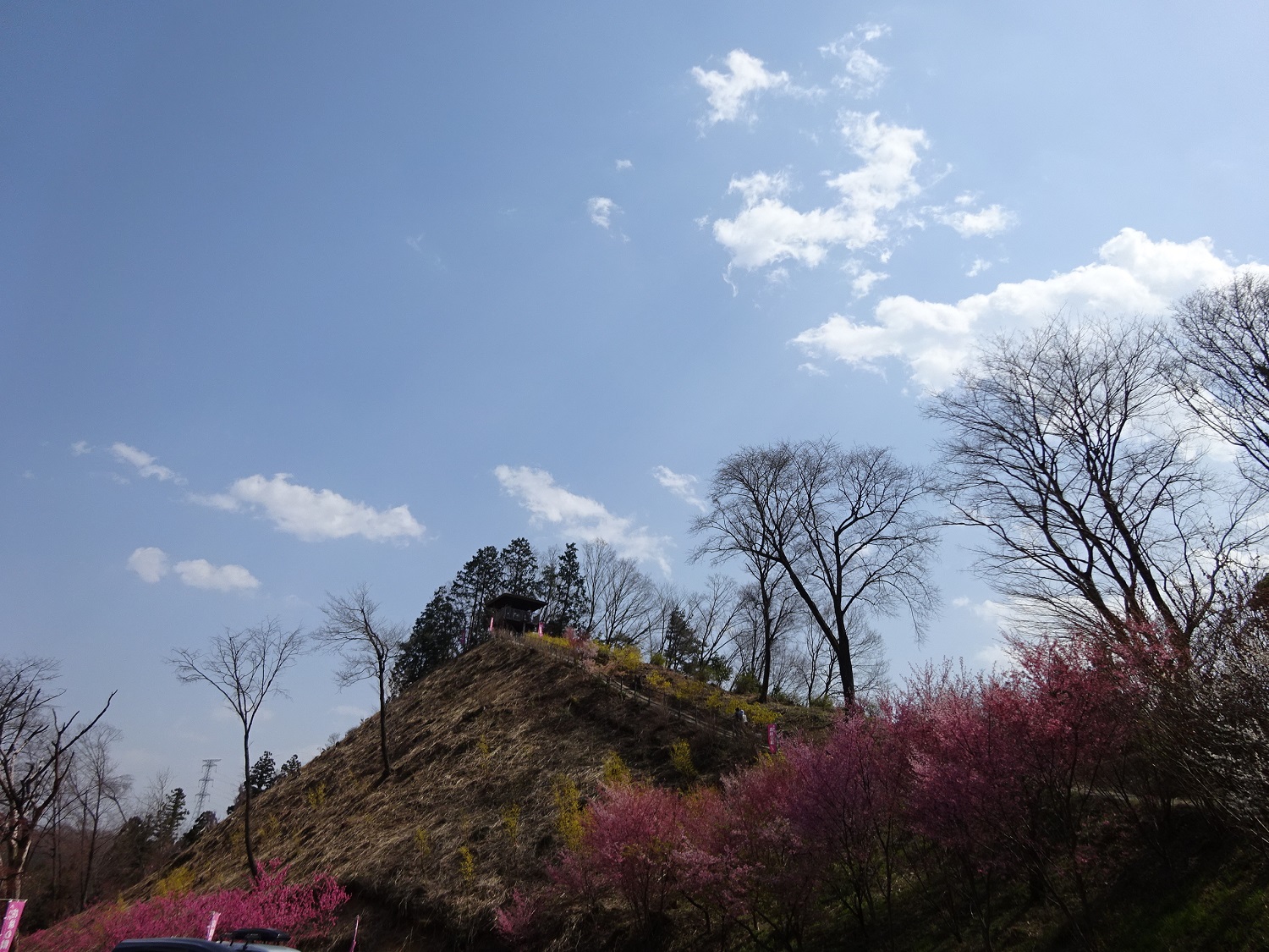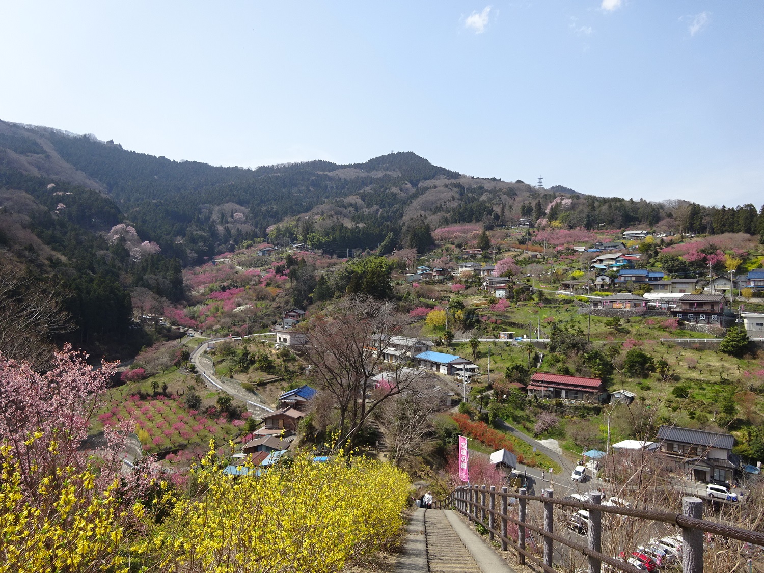 東屋のある見晴台からぐるりと見える景色のどこにも花が満開でした。