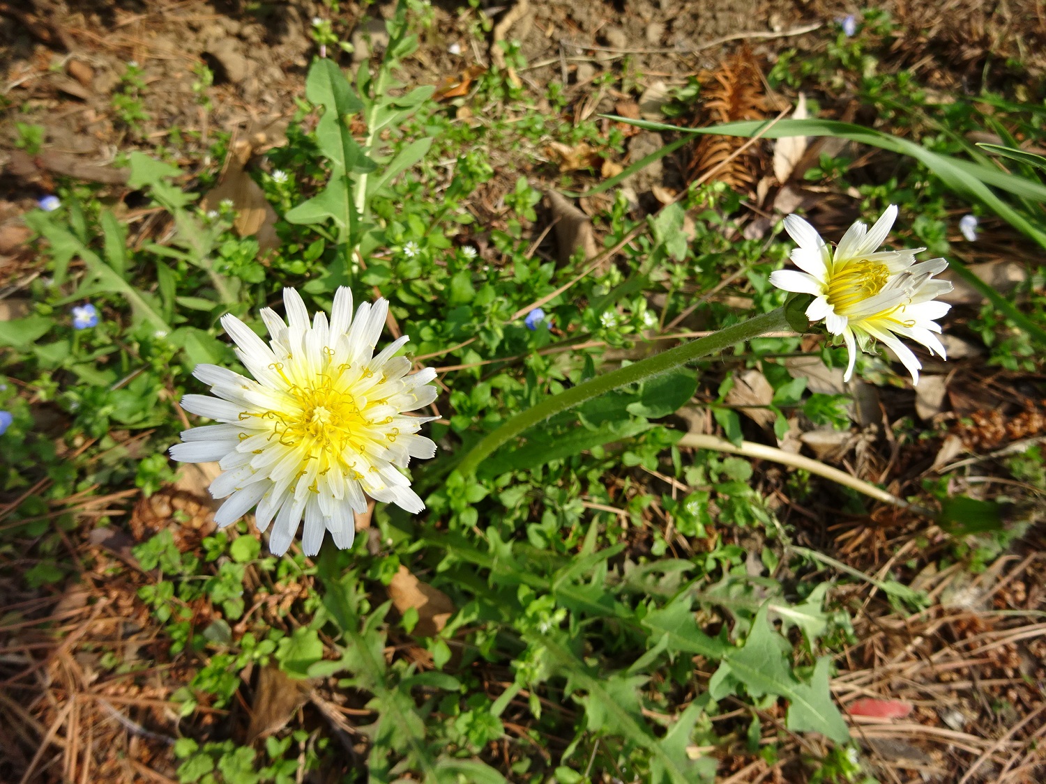 寄居駅までの道すがら、白いタンポポを見つけました!