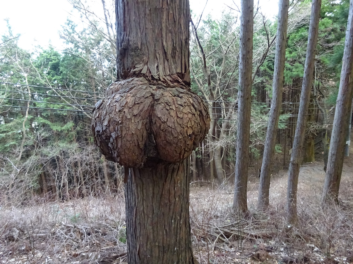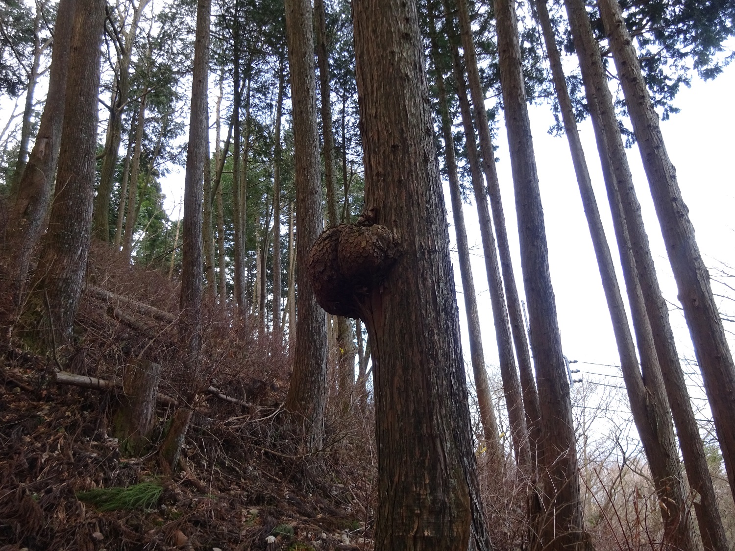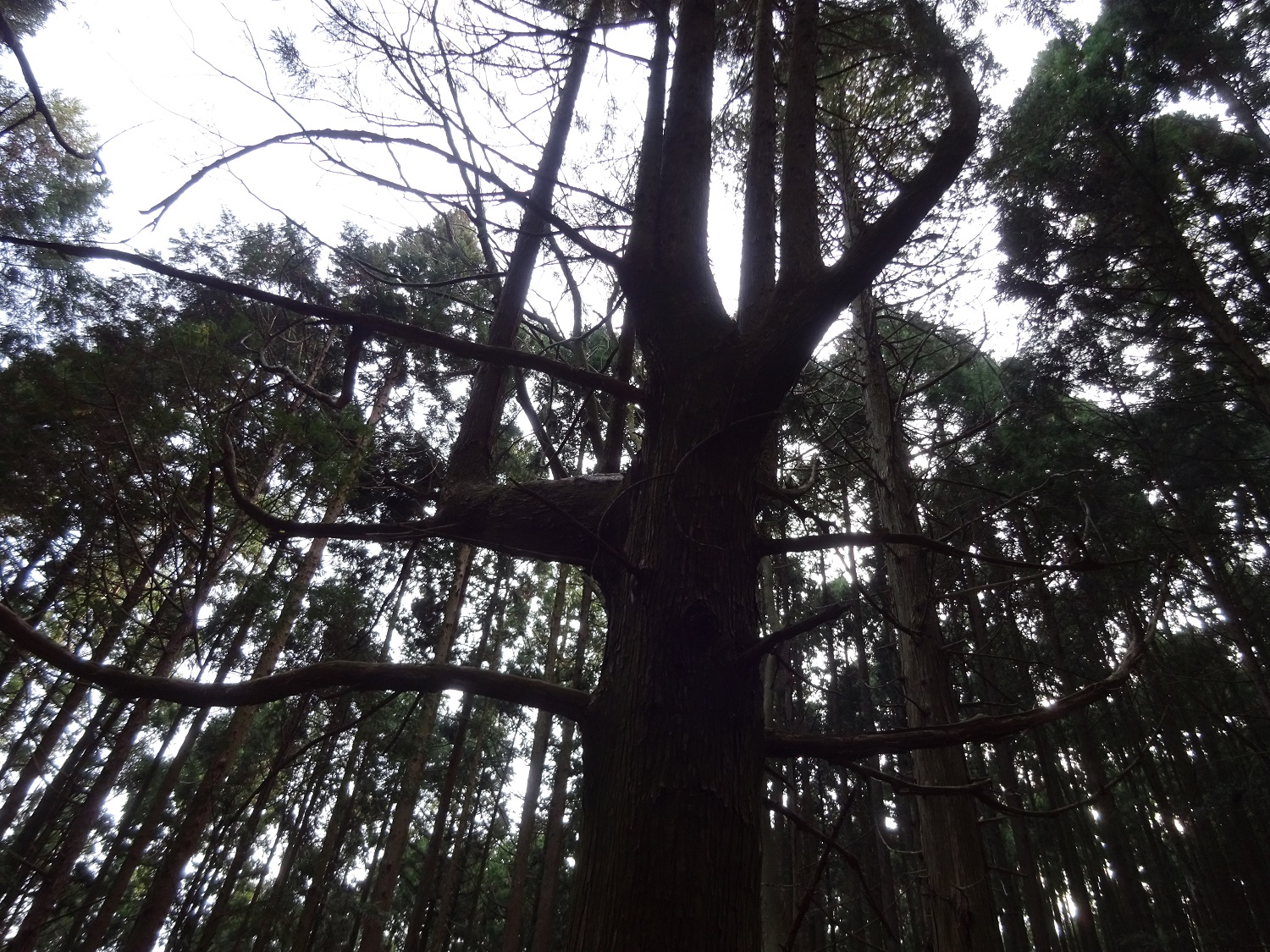 まわりはまっすぐな杉の木が並んでいるのに…不思議ね~。