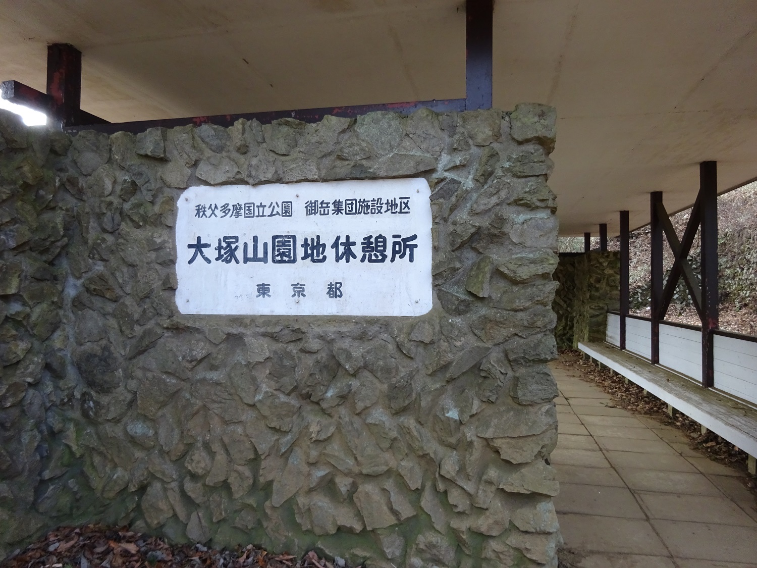 東屋とトイレの前は樹木で囲まれてたけど、ベンチがある。