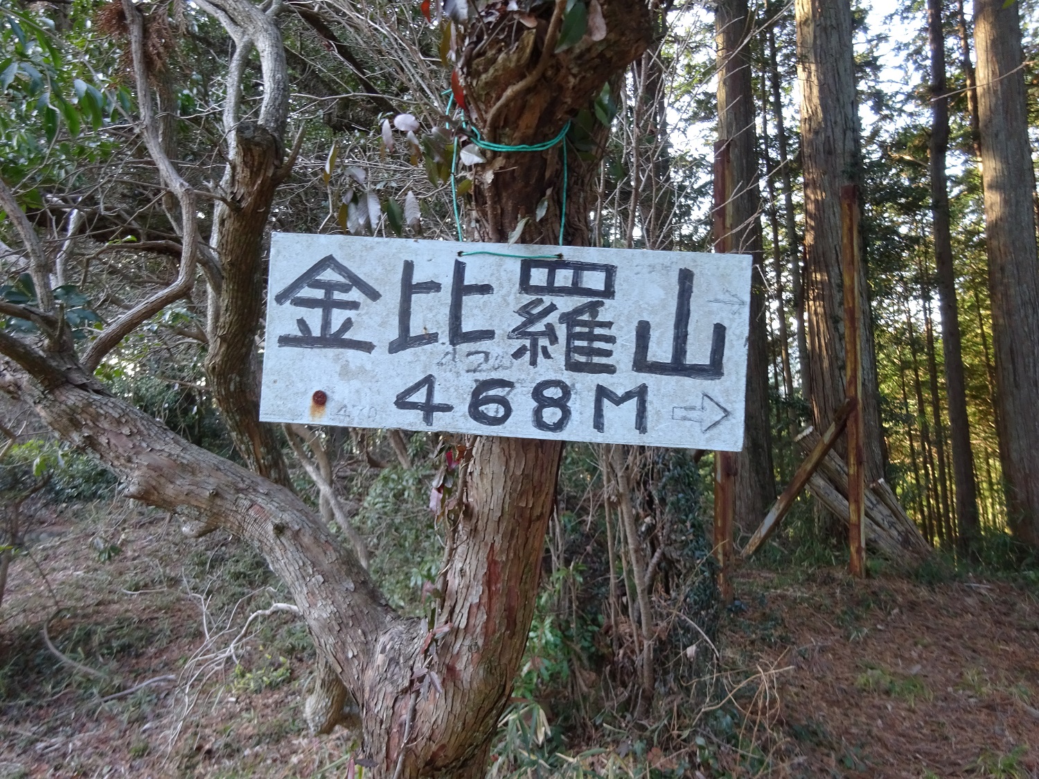 14時54分、金比羅山山頂着。標高468m。